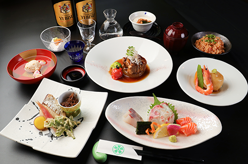 会席料理にてご案内しております。